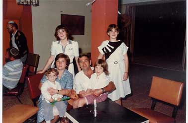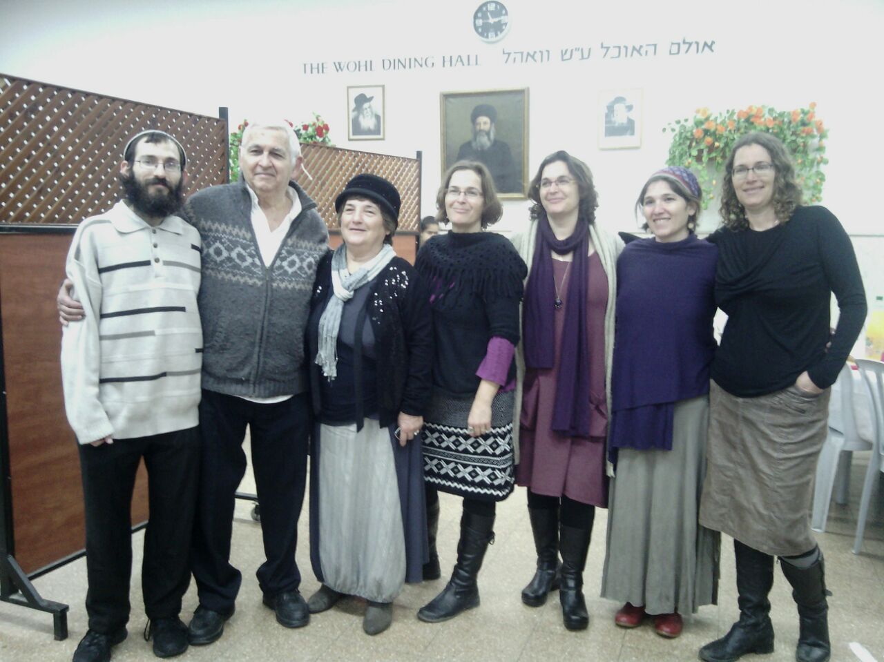 ![]() ישראל יורב מדליק את החנוכיה בבית כנסת1973 משמאל עומדים אבישי, עמוס, חנה וצילה הפעוטות. מעזרת נשים מציצה לאה יורב |