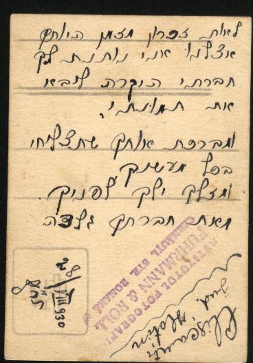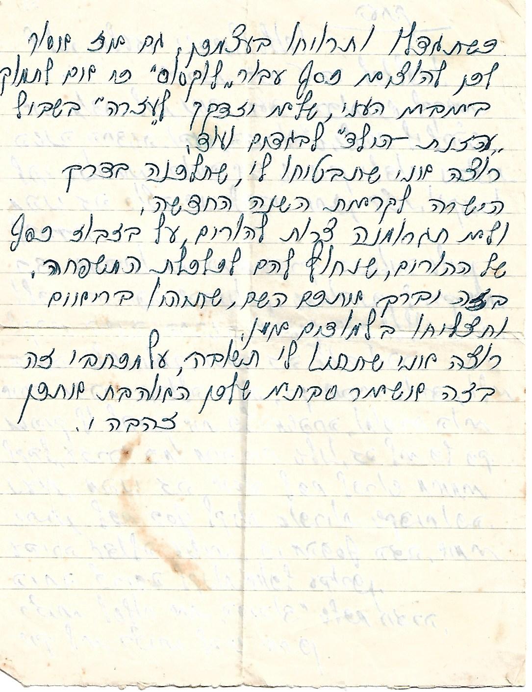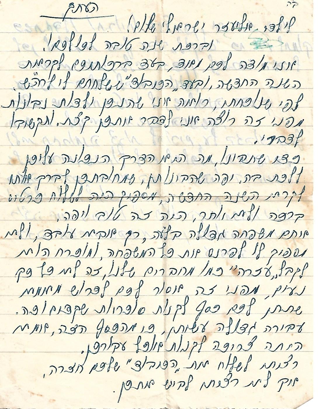 מכתב שנשלח מהארץ לאהובה -כחודשיים לאחר