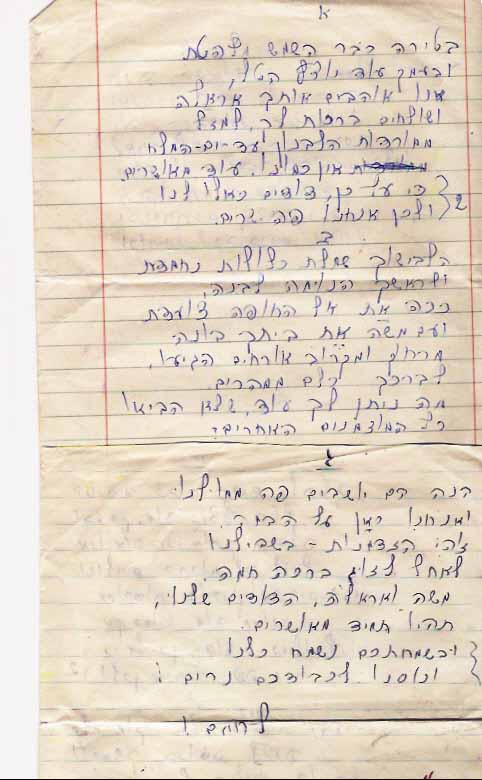 ![]() מכתב מסבא גרשון להורים של משה מזכיר את הנין עמיר הפיקח יפה תואר ויפה מראה ויגדל להיות תלמיד חכם |