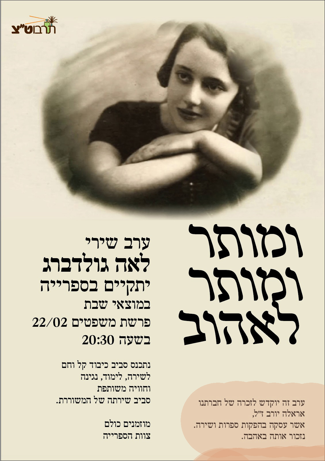 ![]() ההזמנה לערב שירי רחל שפירא ובהשתתפותה הוקדש לזכרה של אראלה |