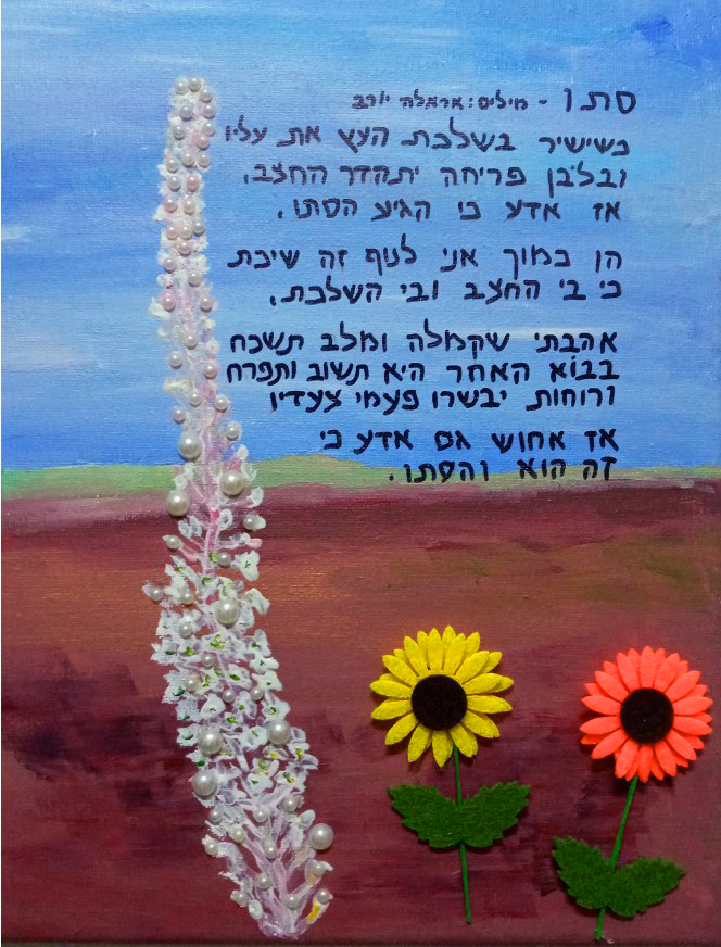 ![]() מה רבו נפלאותיך ה' השיבה לי ששון ישעך עבודת רקמה באישפוז האחרון |