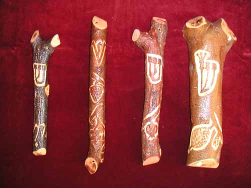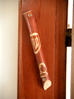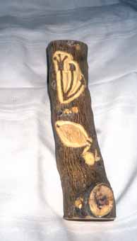 המזוזות ושאר הכלים שיוסי מגלף, עשויים עץ טבעי, מעצי העמק הגדלים בסביבתו הטבעית של האמן אזדרכת , צאלון, אקליפטוס ואתרוג |