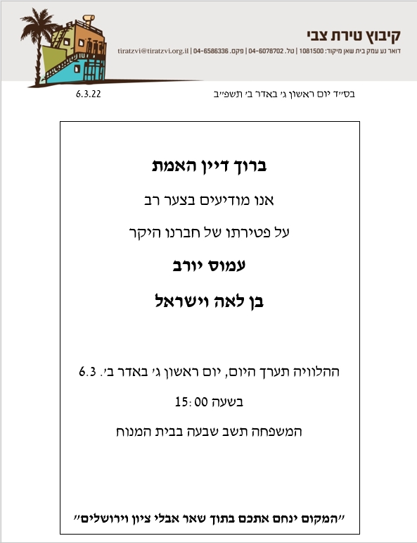 נפטר ג' אדר ב' תשפ"ב 6.3.2022